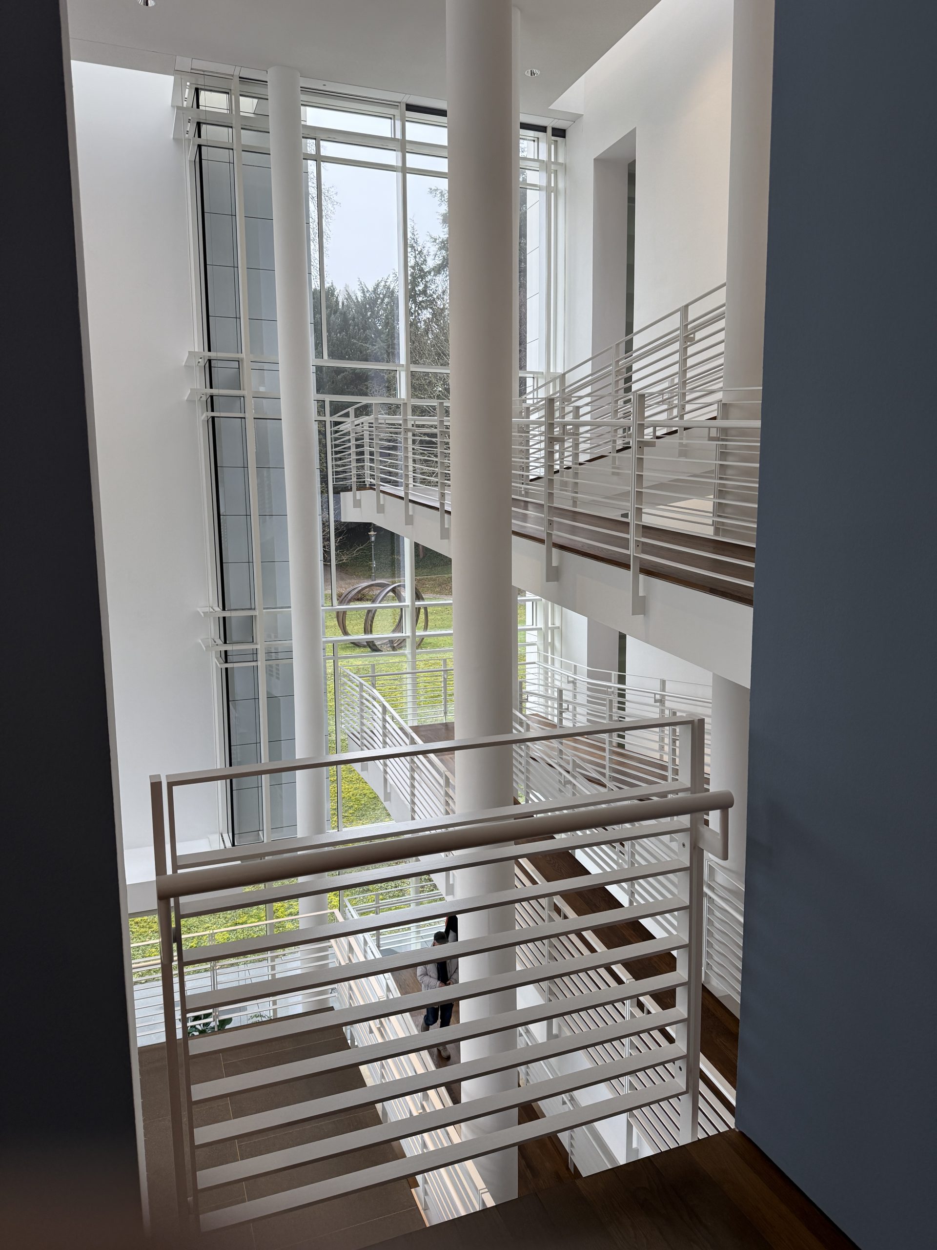 Es war ein trüber Nebelsonntag zu einem  der schönsten Museen-Galerie die ich kenne, das Burdamuseum im Baden-Bader Park. Von dem Amerikaner Richard Meyer 2004 fertiggestellt verschwendet das Ensemble viel Platz für Geländerschrägen, um von einem Stockwerk zum anderen zu gelangen. Gerade dies macht aber das Frieder-Burda-Museum selbst zu Kunstwerk. Ich würde es gerne mal besuchen auch wenn es leer wäre.